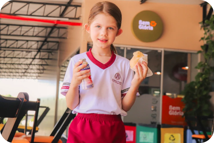 Com lanches variados e saborosos preparados pela própria equipe, a cantina também oferece almoço diariamente, das 12h às 13h, sempre com o acompanhamento da nutricionista escolar, garantindo uma alimentação equilibrada, saudável e de qualidade.